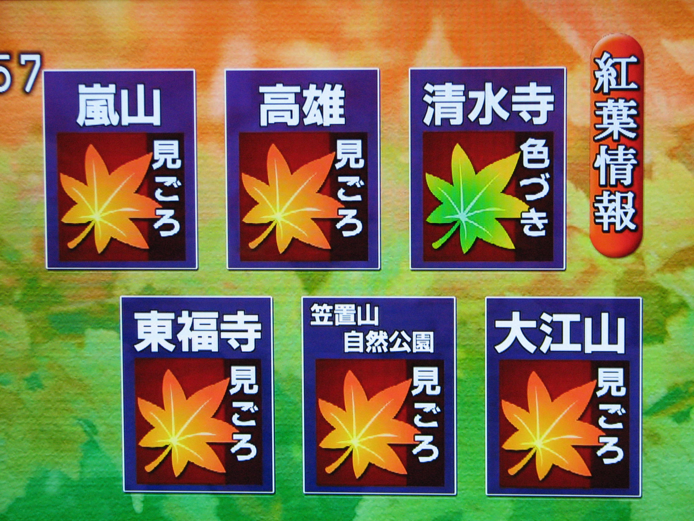 NHK京都ではこの季節は紅葉情報があって、きのう全部が真っ赤になったのでおしらせします