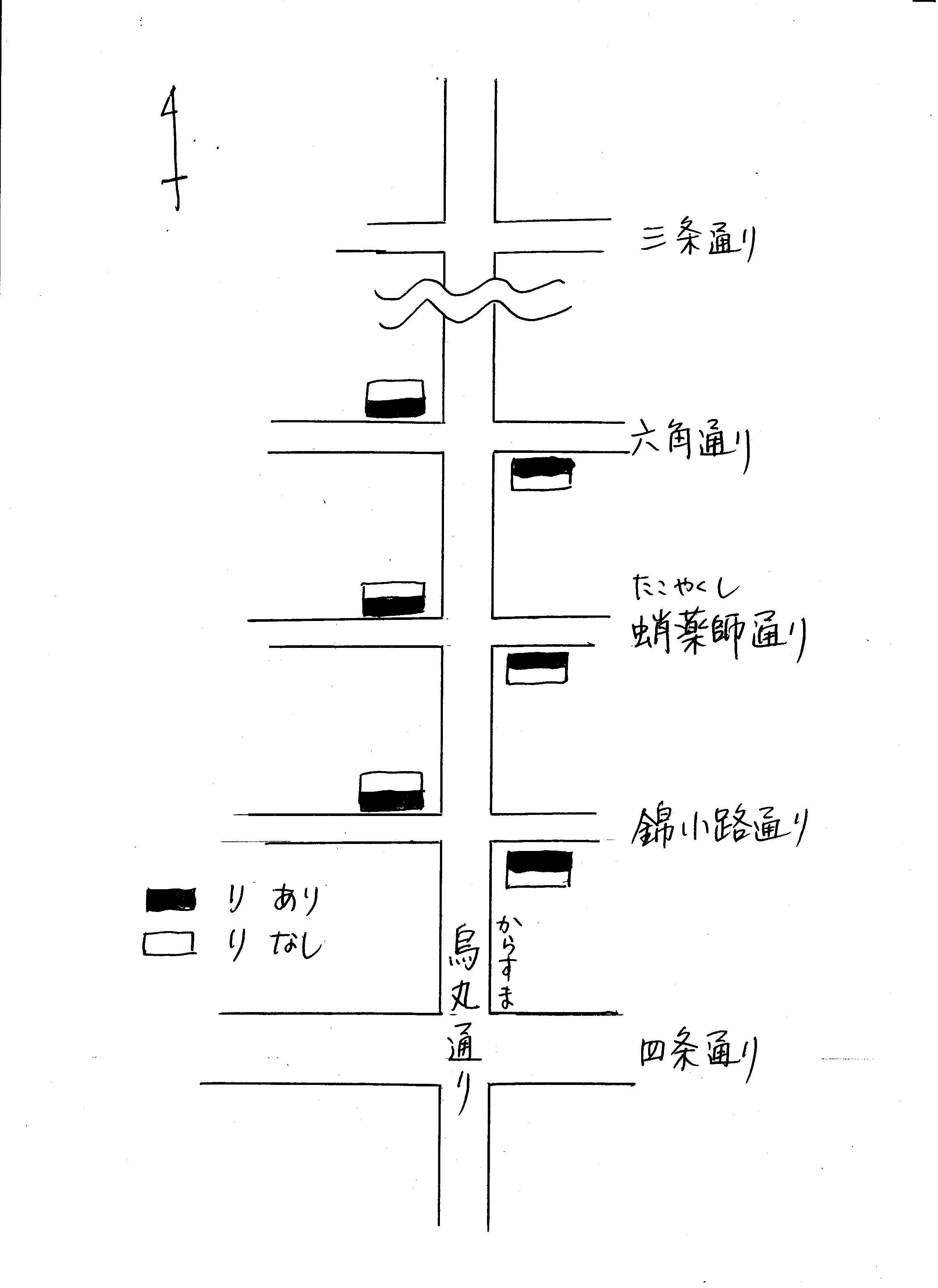 念のため、もう一本北にアガッテ蛸薬師通りとの交差点を見ます。