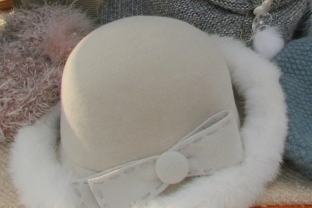 うさぎのファーのフェルトを型入れして作った帽子です。