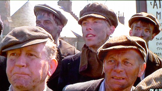 すすで汚れた顔のまま、エリックの走りを見物にきている肉体労働者風の人たち。