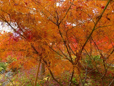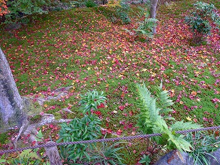 みずみずしい苔の上に落ちかかった枯れたもみじもまたよし。