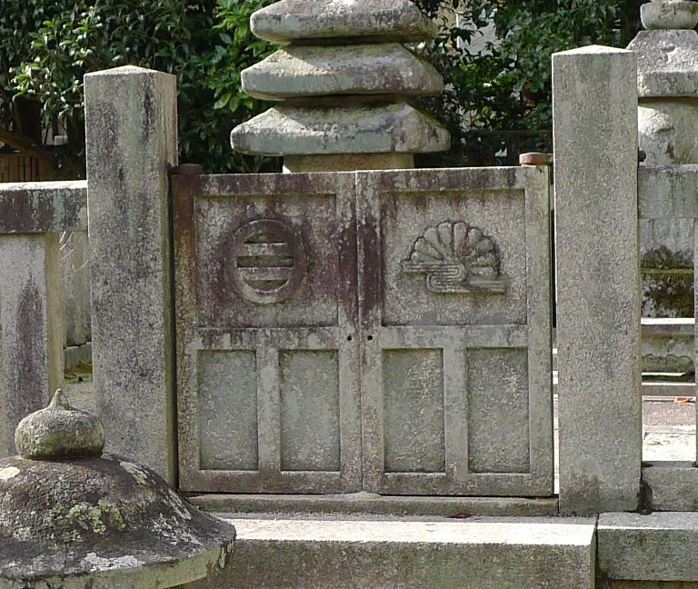 左に北朝の足利家の「丸に二つ引き」、右に南朝の楠家の「菊水」の家紋が仲良くならんでいるというわけです。