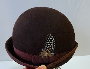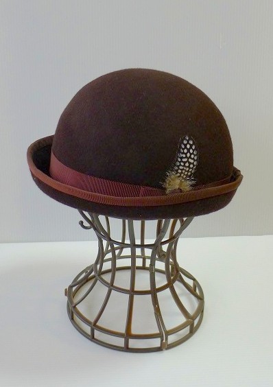 そのあとこげ茶のグログランリボンでエッジをくるんだら、うんうん、ボーラーハットらしくなりましたよ!