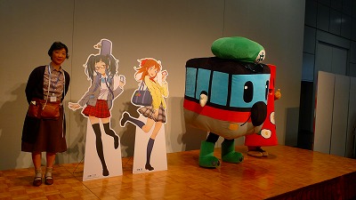 市営地下鉄のゆるキャラや、地下鉄のイメージガール(?)の等身大パネルをステージに出して、