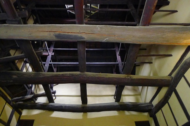 こんな大きな空間を支えていたのがこの巨大な栂の丸太でできた梁です。