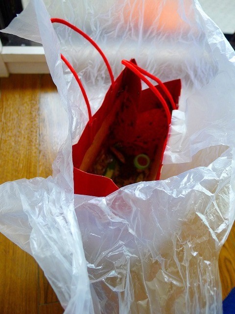 大きめの紙袋に直接寿々むしを入れ、それをビニール袋にいれて用意していました。