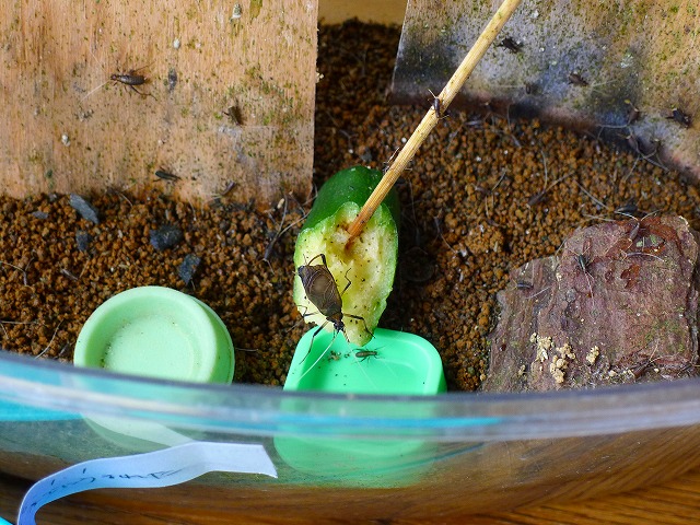 日付を付箋に書いて、いつ冷蔵庫から出した土のものかわかるようにして小さな虫かご3つにいれていました。