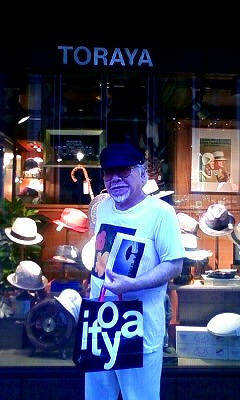 銀座トラヤ帽子店前にて