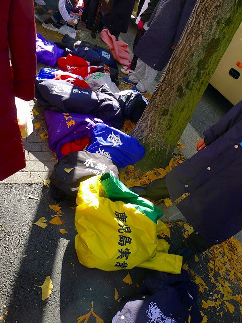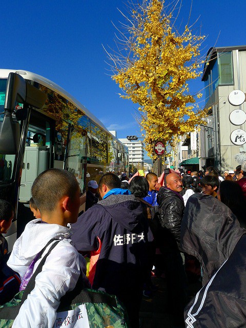 中継所は、たすきを渡したあとは一般人も入れるようになるのですが、もともとただの歩道だし、そこに救急車も来たりしてごった返していました。