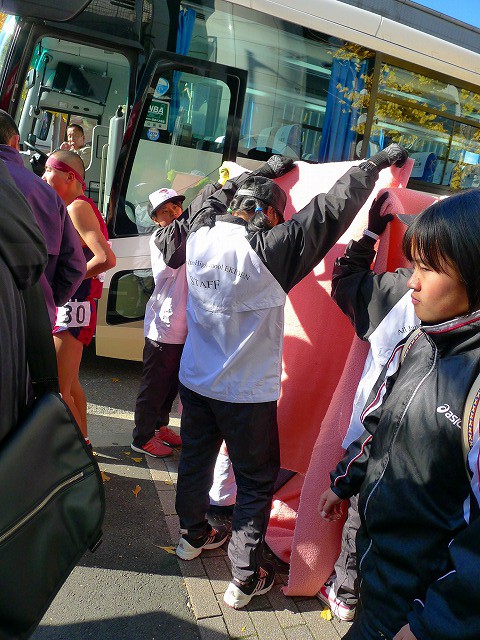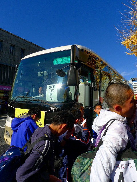 よく見たらこのバス、1区の選手を乗せていくバスでした!