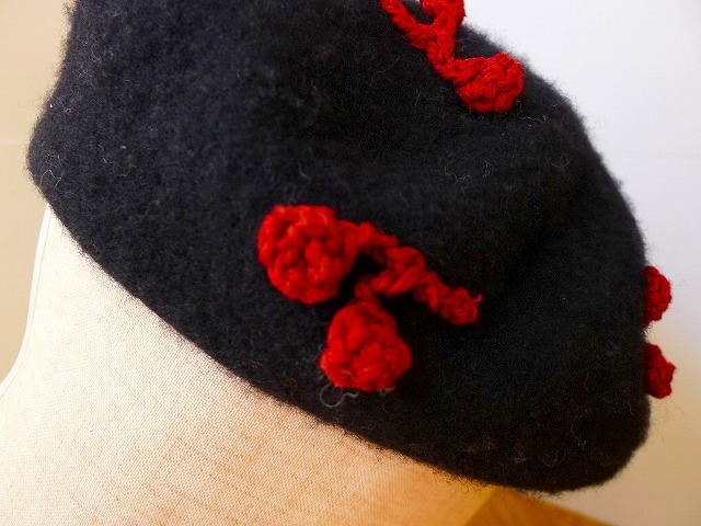 このさくらんぼは、実は丸まったあと、はしっこどおしを引き抜き編みでくっつけたものなんです。