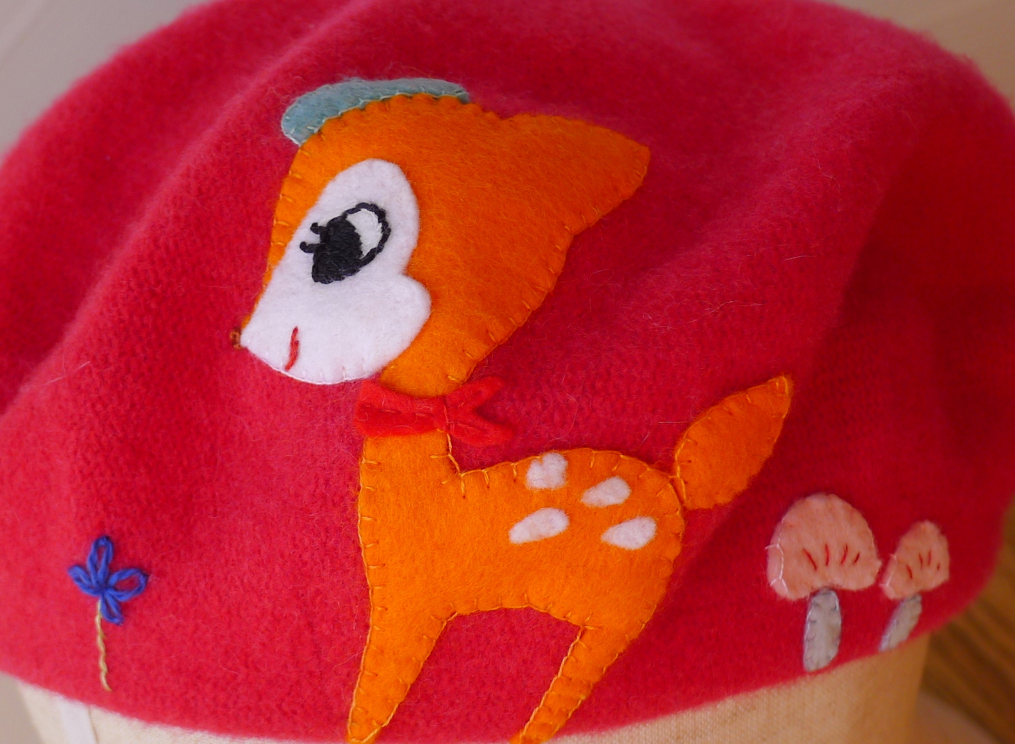 中にベレーをかぶったバンビがいたのにインスピレーションを受けて、自分で絵を描いておこした図柄です。