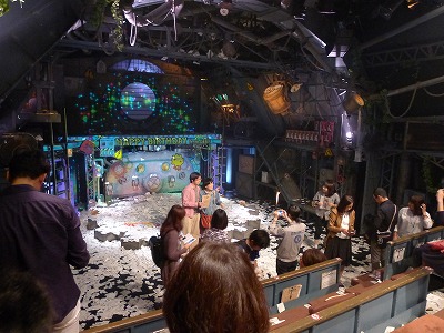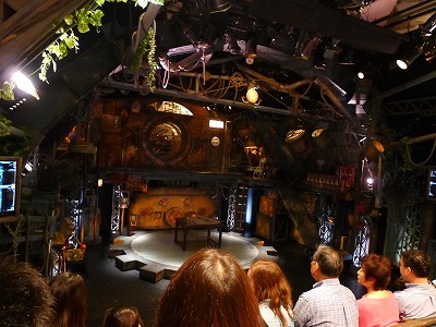 ステージがまさしく歯車。むきだしの照明器具、古ぼけた風の装置。
