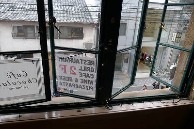 窓から三条通りを見下ろしました。