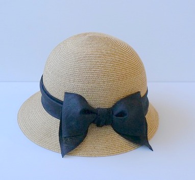 麦わらのクロッシェ+麻リボン