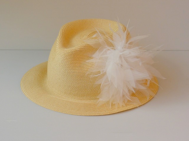 143.たためる麦藁帽子 羽根かざりみたいな中折れ帽