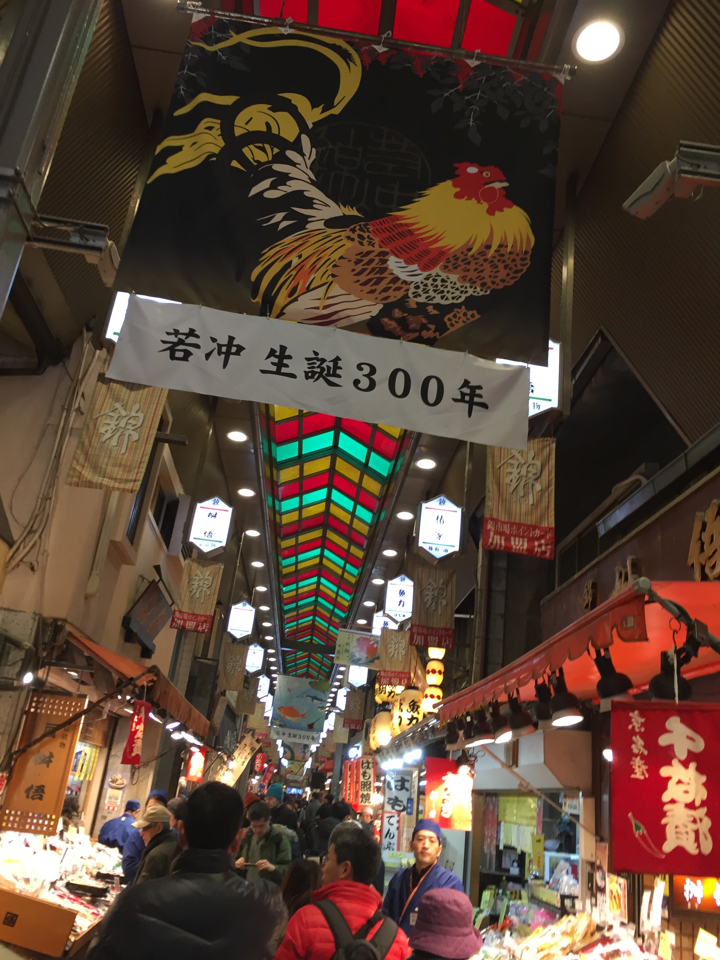 今年は伊藤若冲生誕300年だそうで、ここ錦市場にも若冲の絵が
