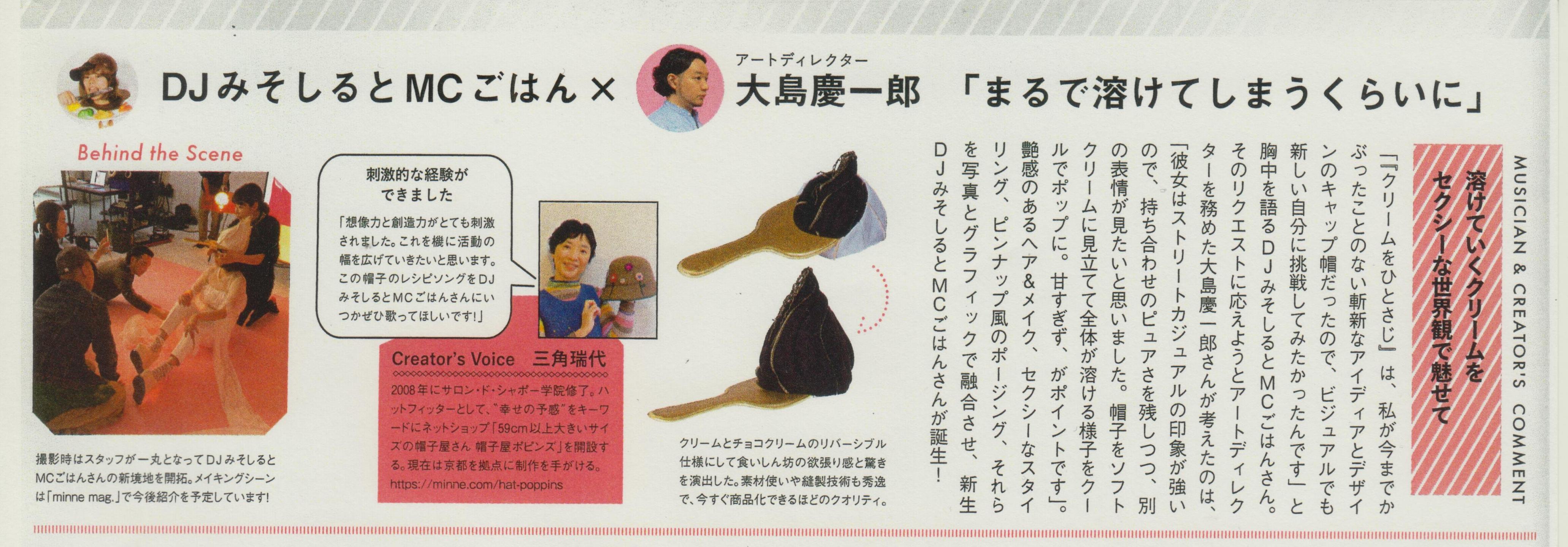 “食いしん帽”というお題を出してくれたDJみそしるとMCごはんさんが、ポピンズのクリーム帽をかぶって紙面をかざってくれました。