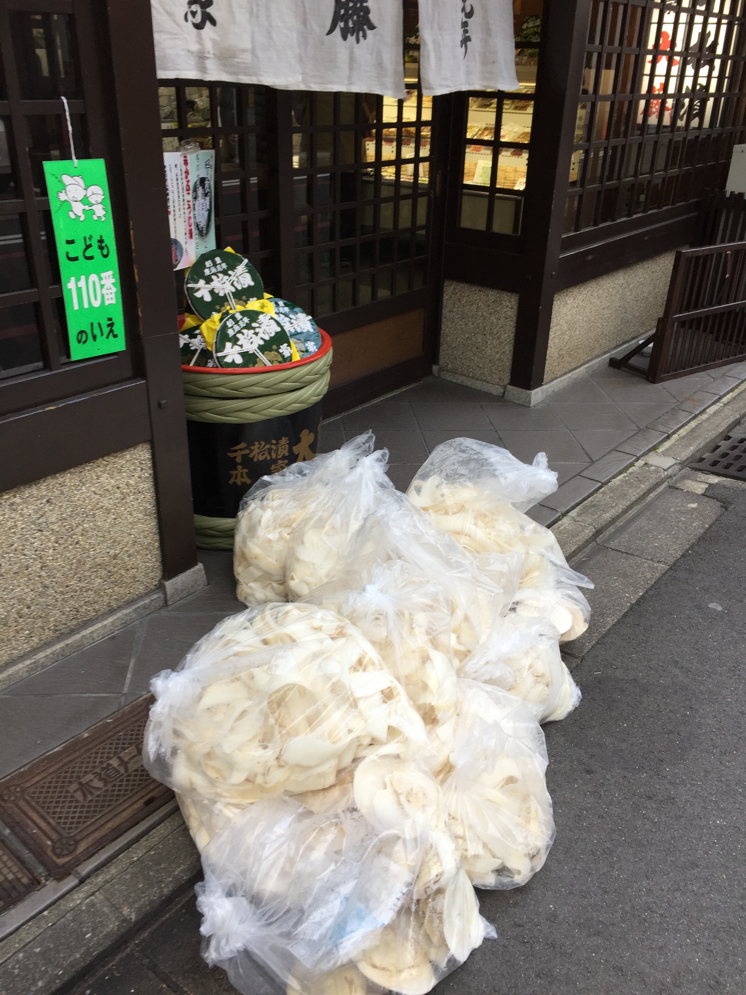 錦市場近くのお漬物やさんの店先にこの時期、よく置いてあるのです。