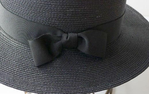 黒×黒でシックな、普段使いの帽子です。