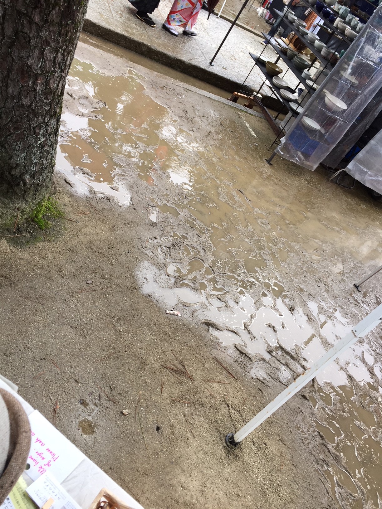 私がお店を出したところは松が生えているところで、根っこで盛り上がっていたので案外水はけは大丈夫。