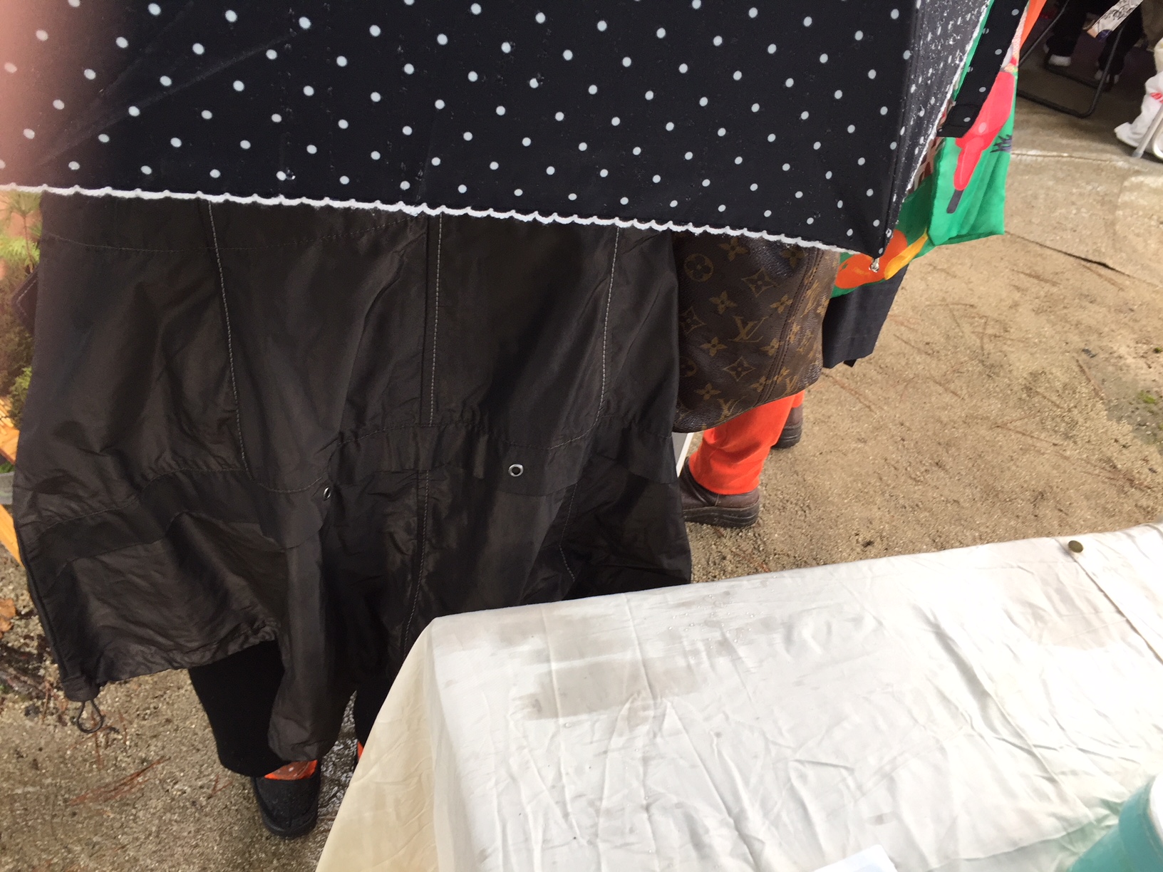 お隣のお客さまの傘のしずくが私の台の上に~!