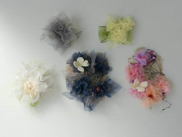 このごろ凝っている、オーガンジーをパンチングマシンで加工したお花です。