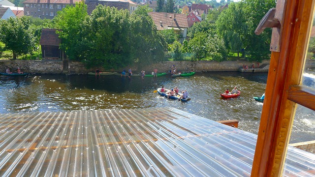 部屋の中からもモルダウ川で遊んでいる人たちが見えます。