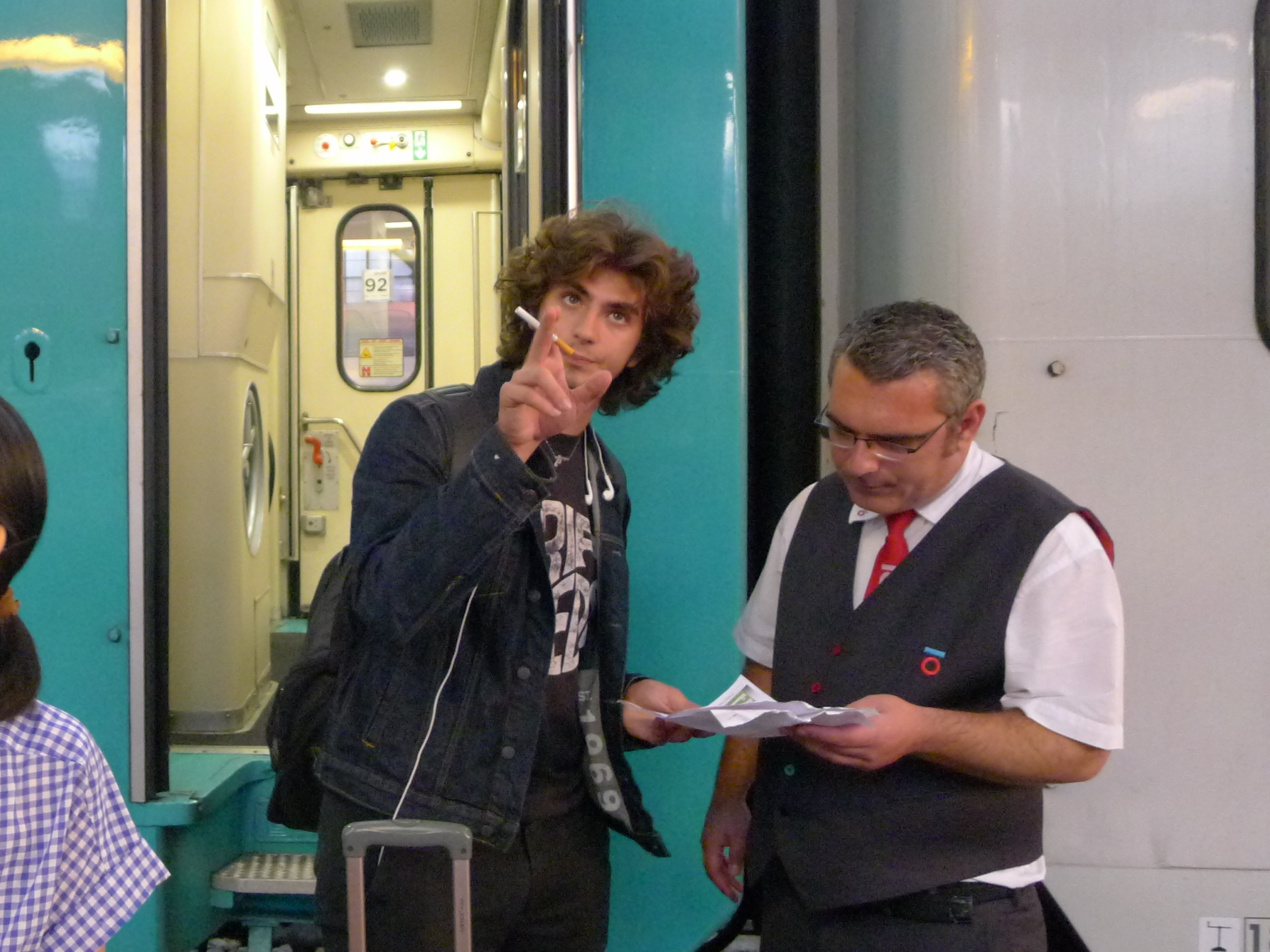 煙草の火を車掌さんに点けてもらってから会話してました。