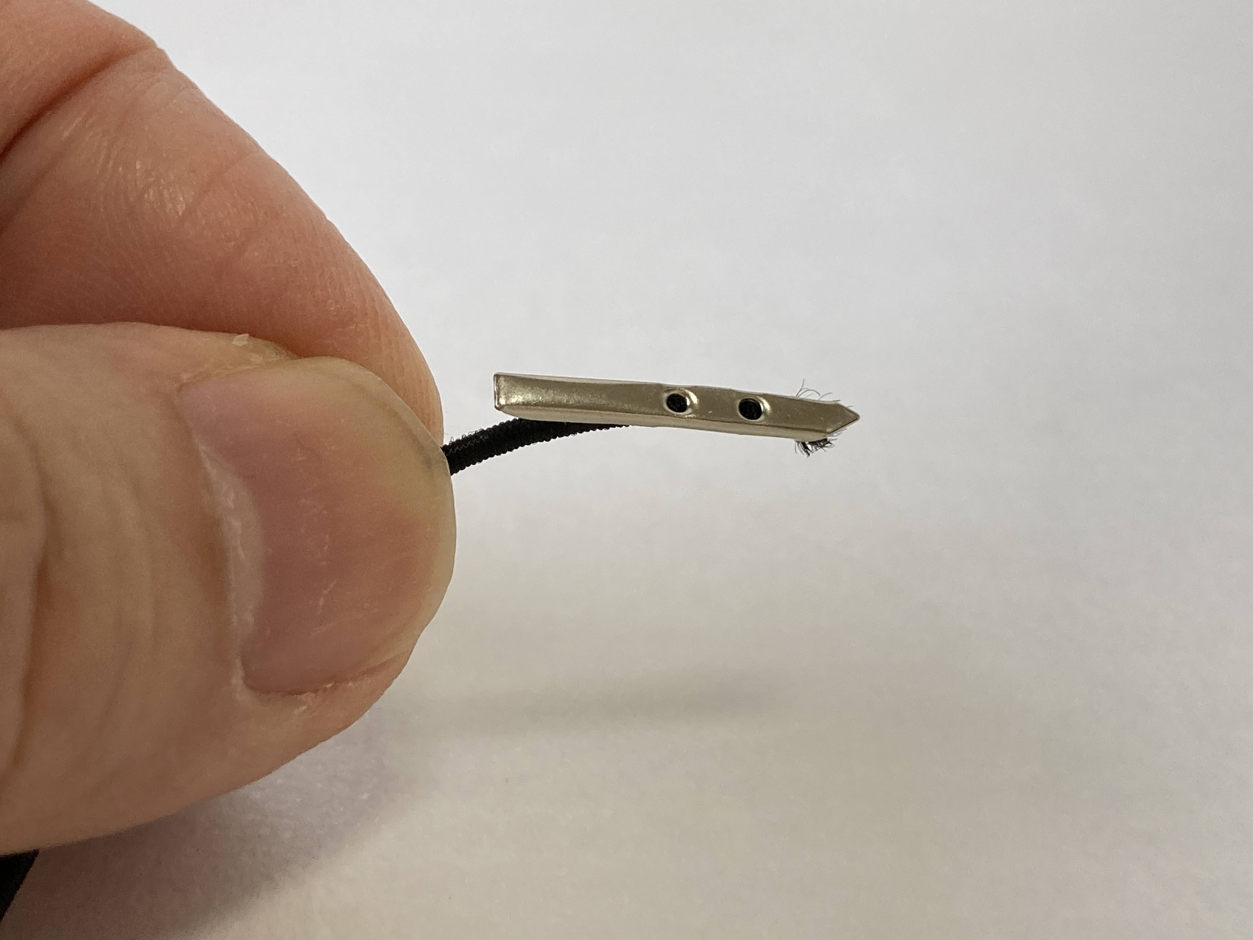 端っこに金属のついた帽子用のゴム、、実は危ないということで