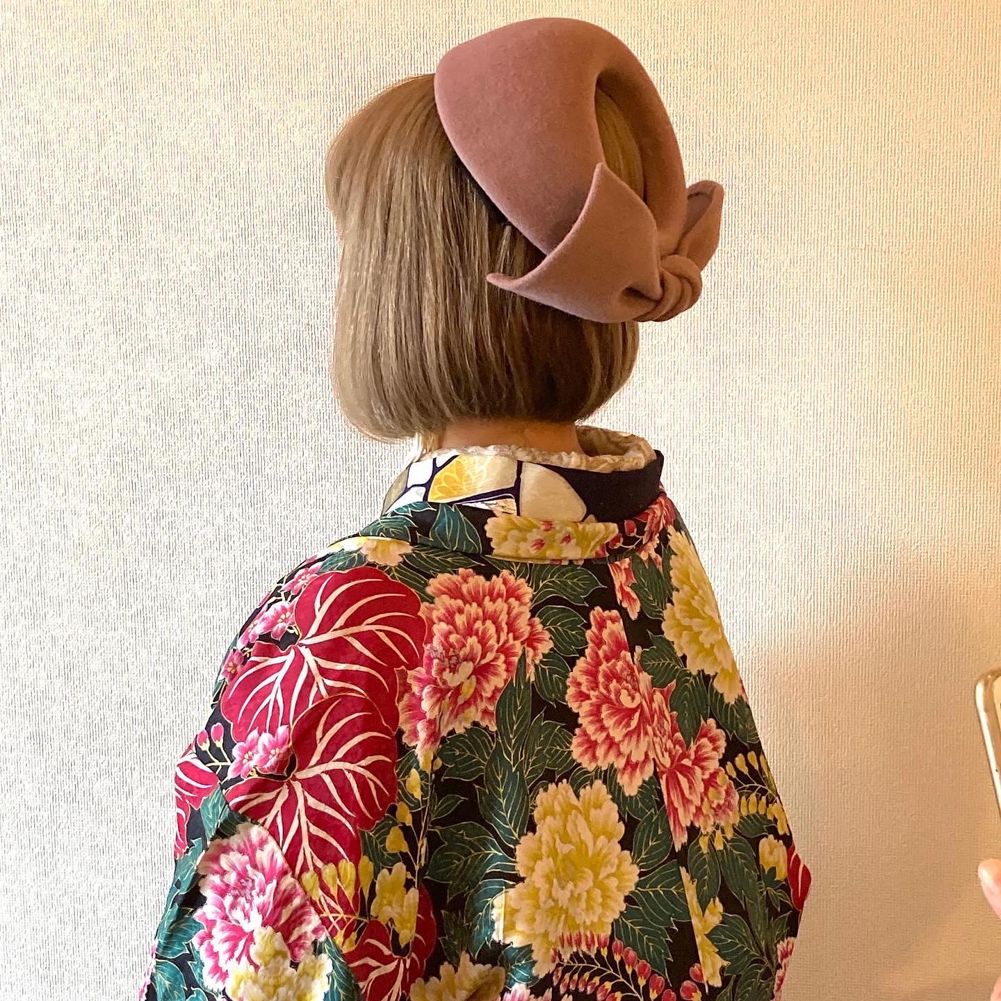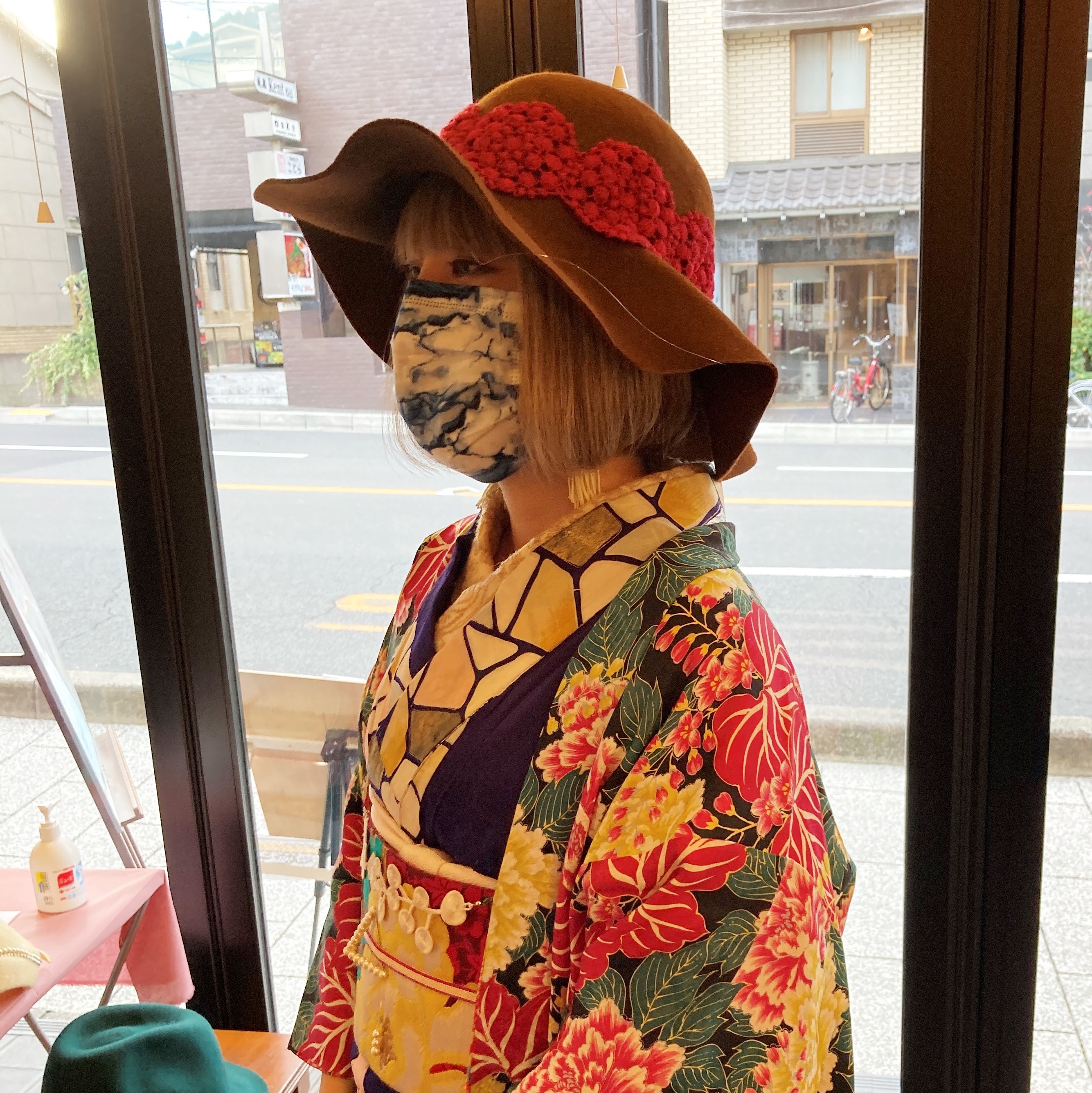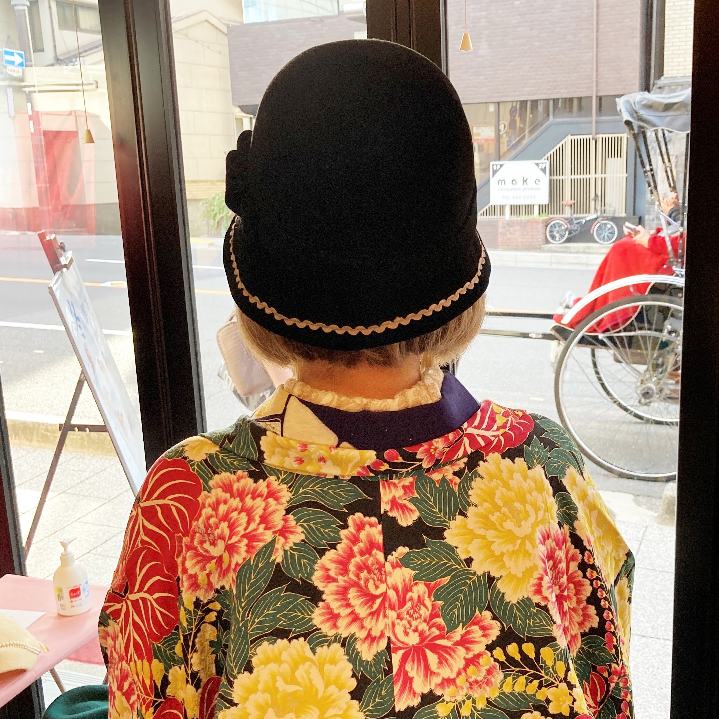 やっぱりフェルトのベレーは着物に合うなあと思いました。クロッシェもキャスケットも。