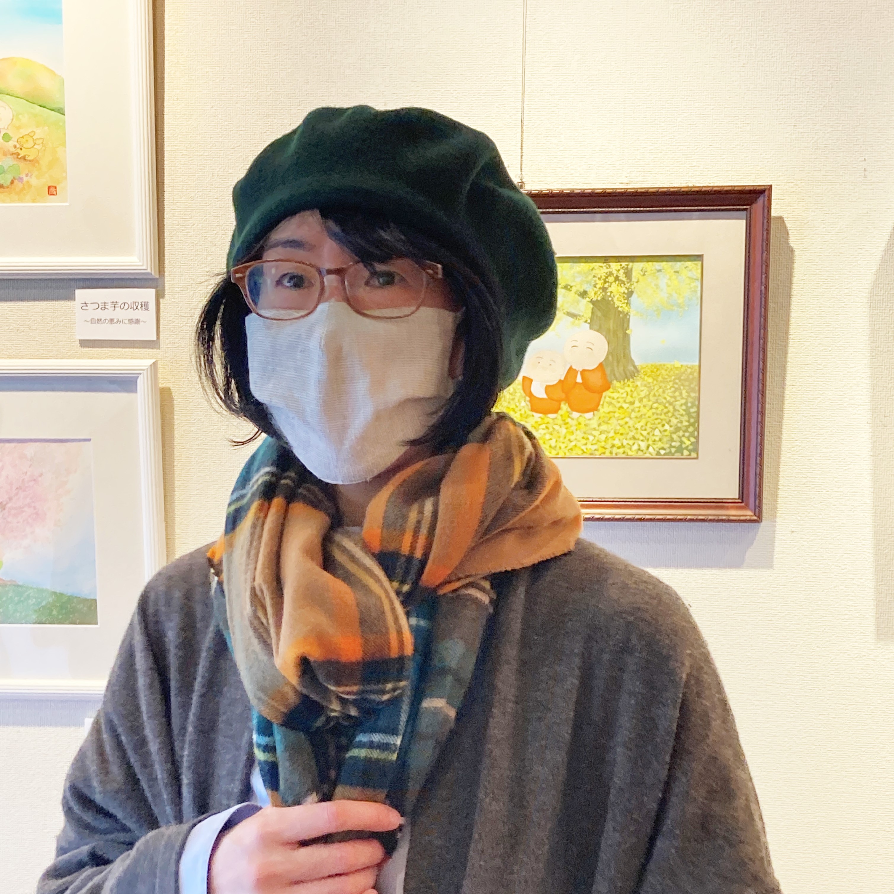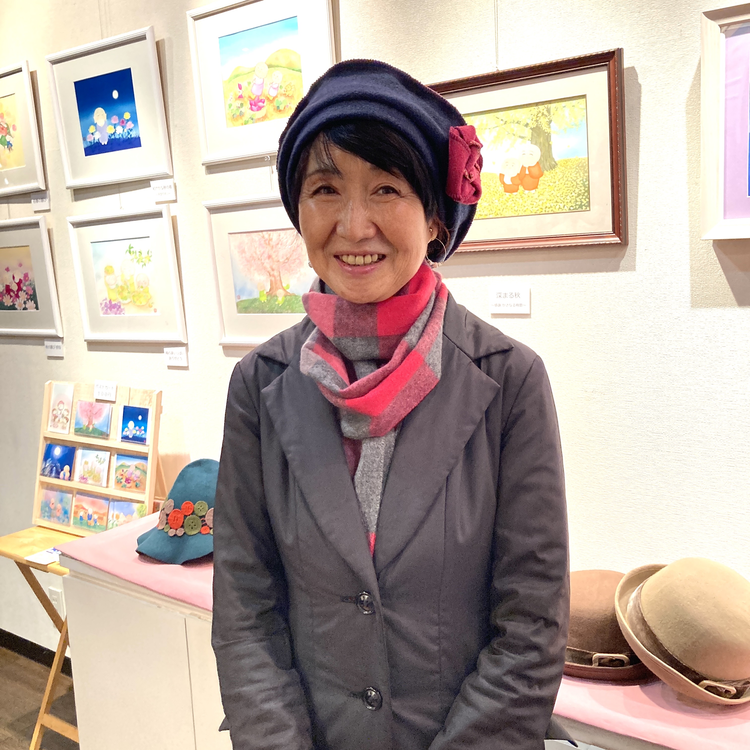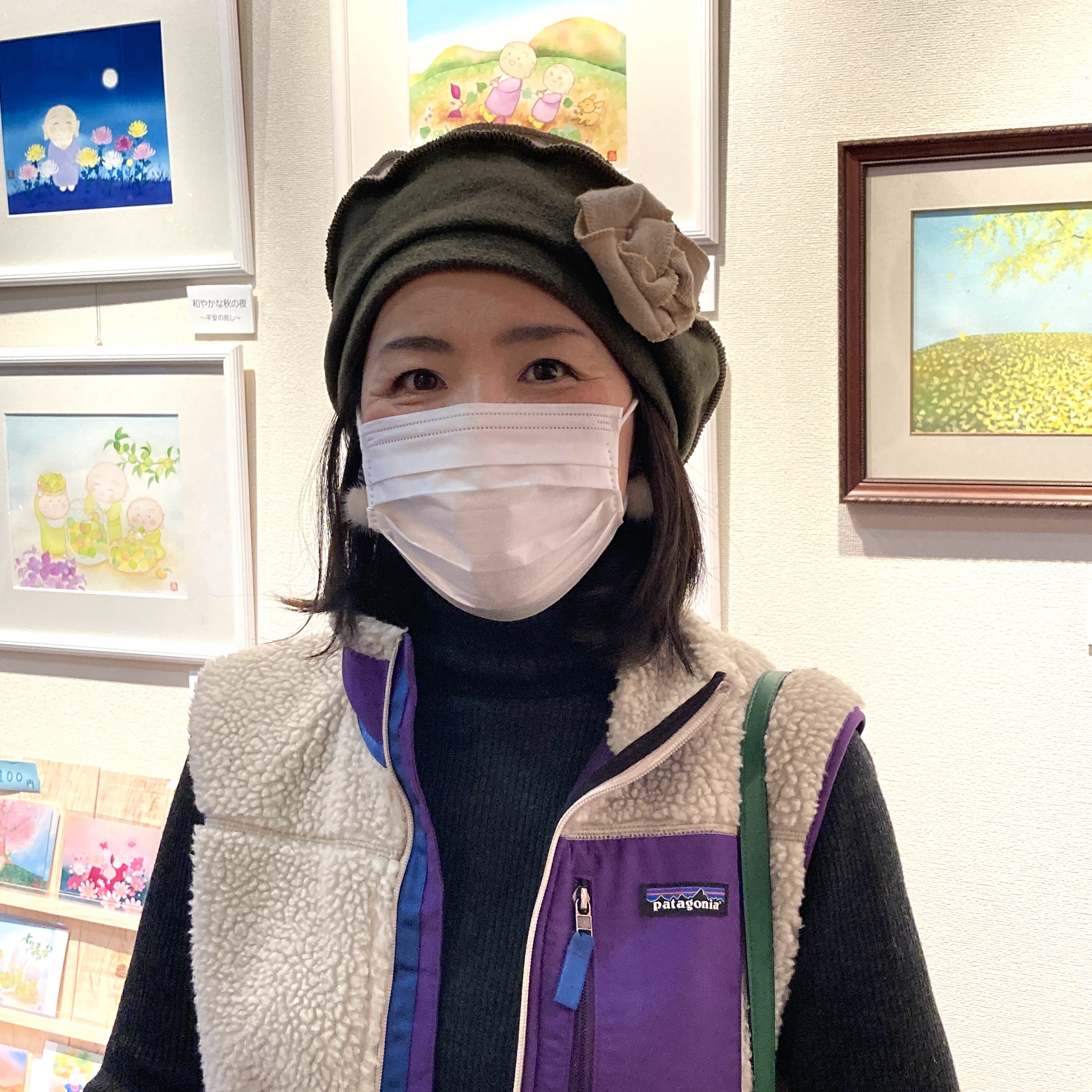 お地蔵さまが可愛らしく、季節感あふれるモチーフと幸せそうな色彩でお客様を魅了しました。