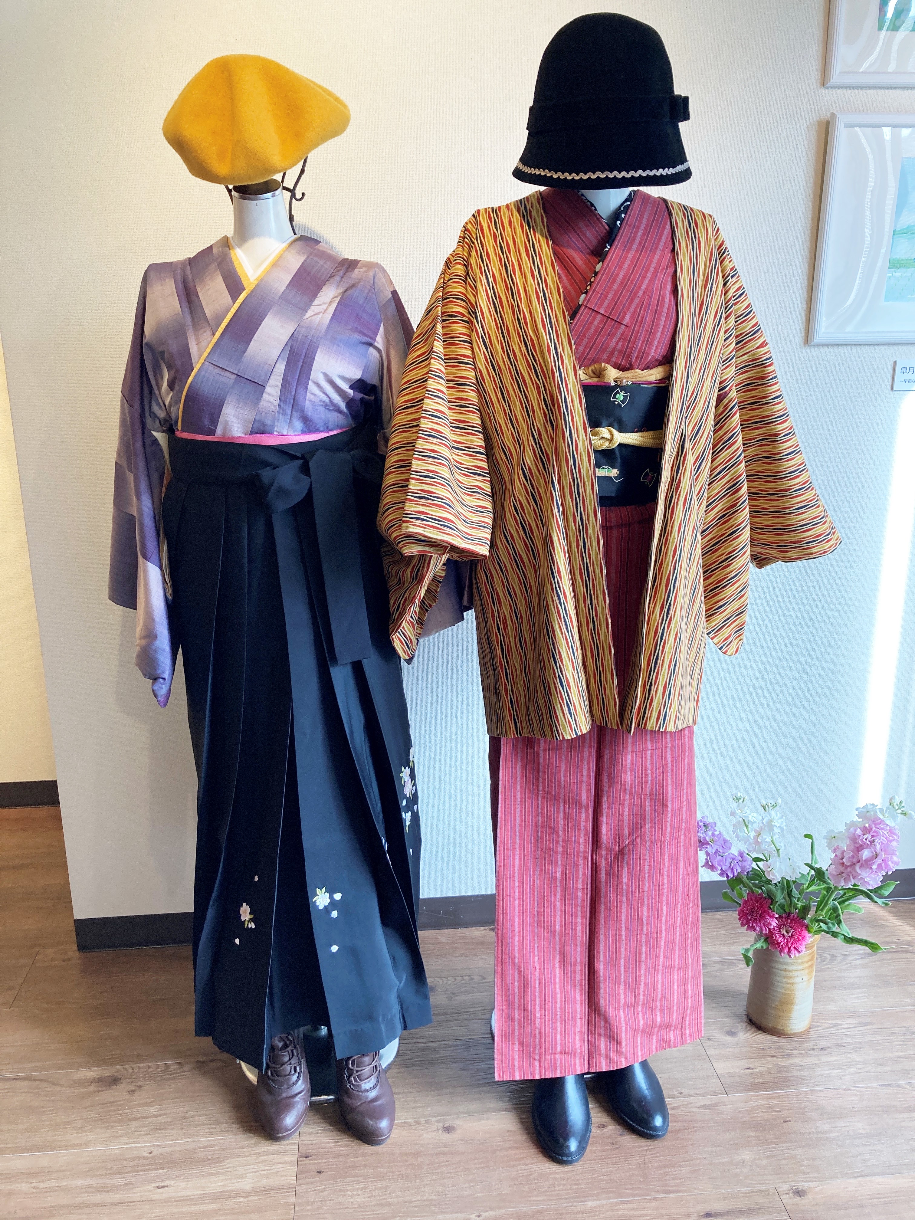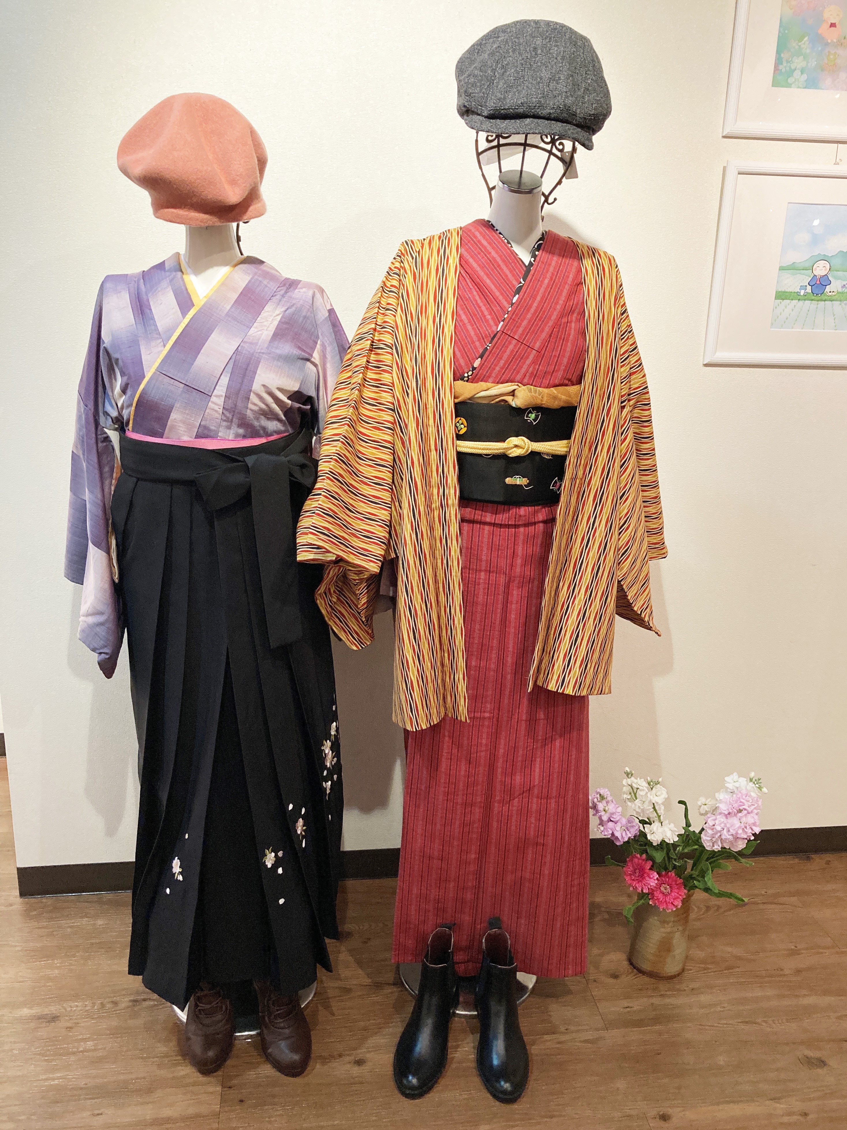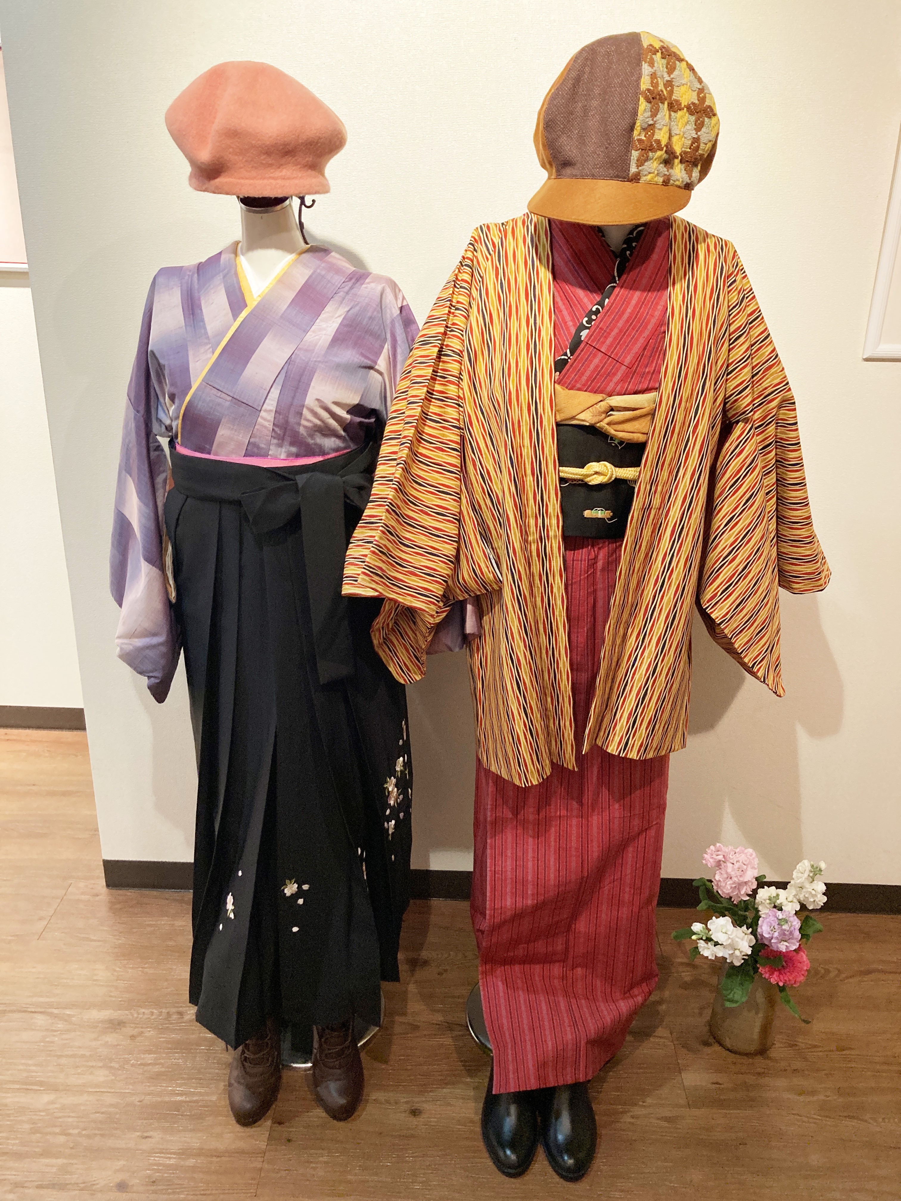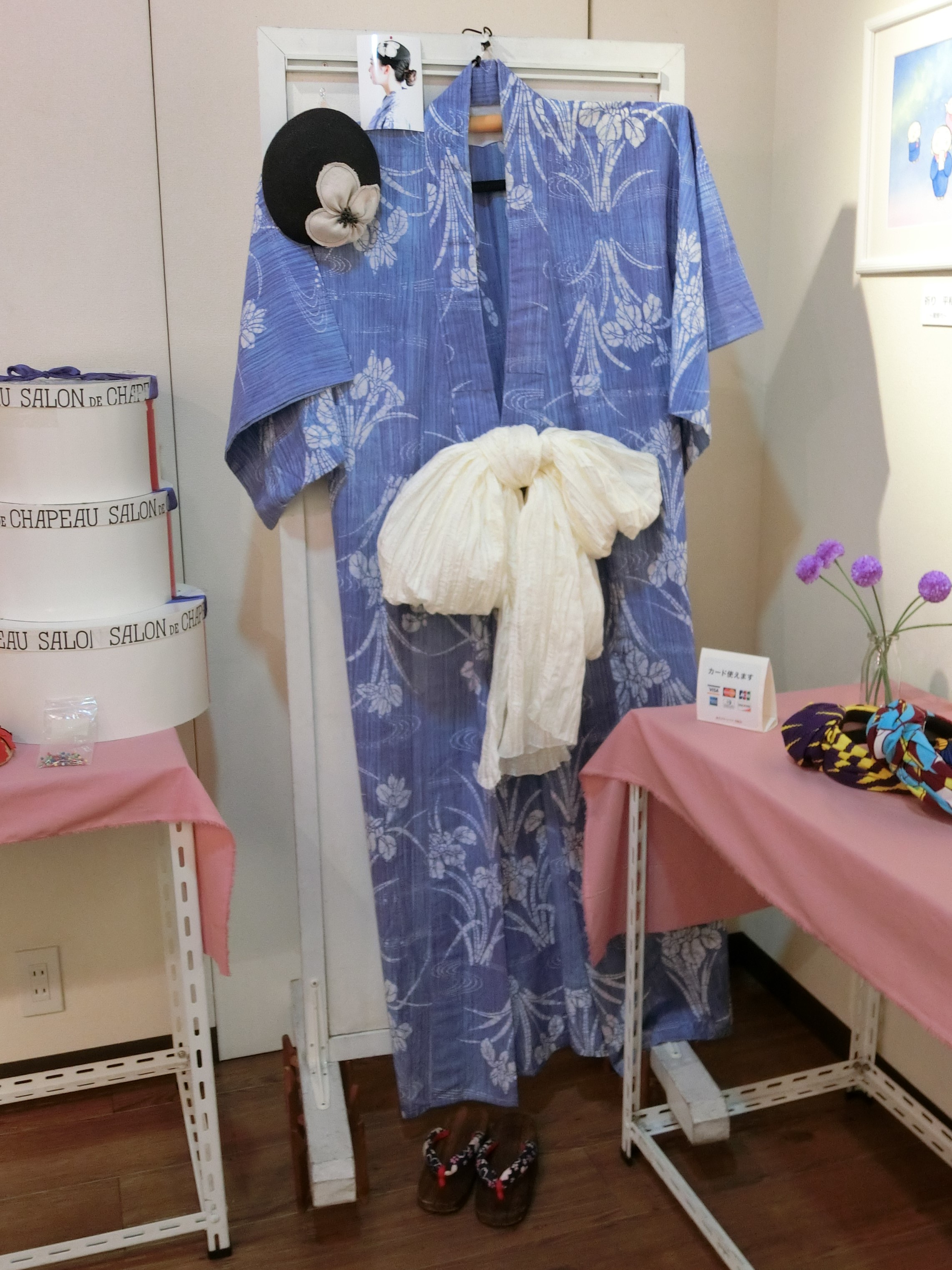 その他にパネル2個にも衣紋掛けで着物をつるし、それぞれ帽子をかぶせました!