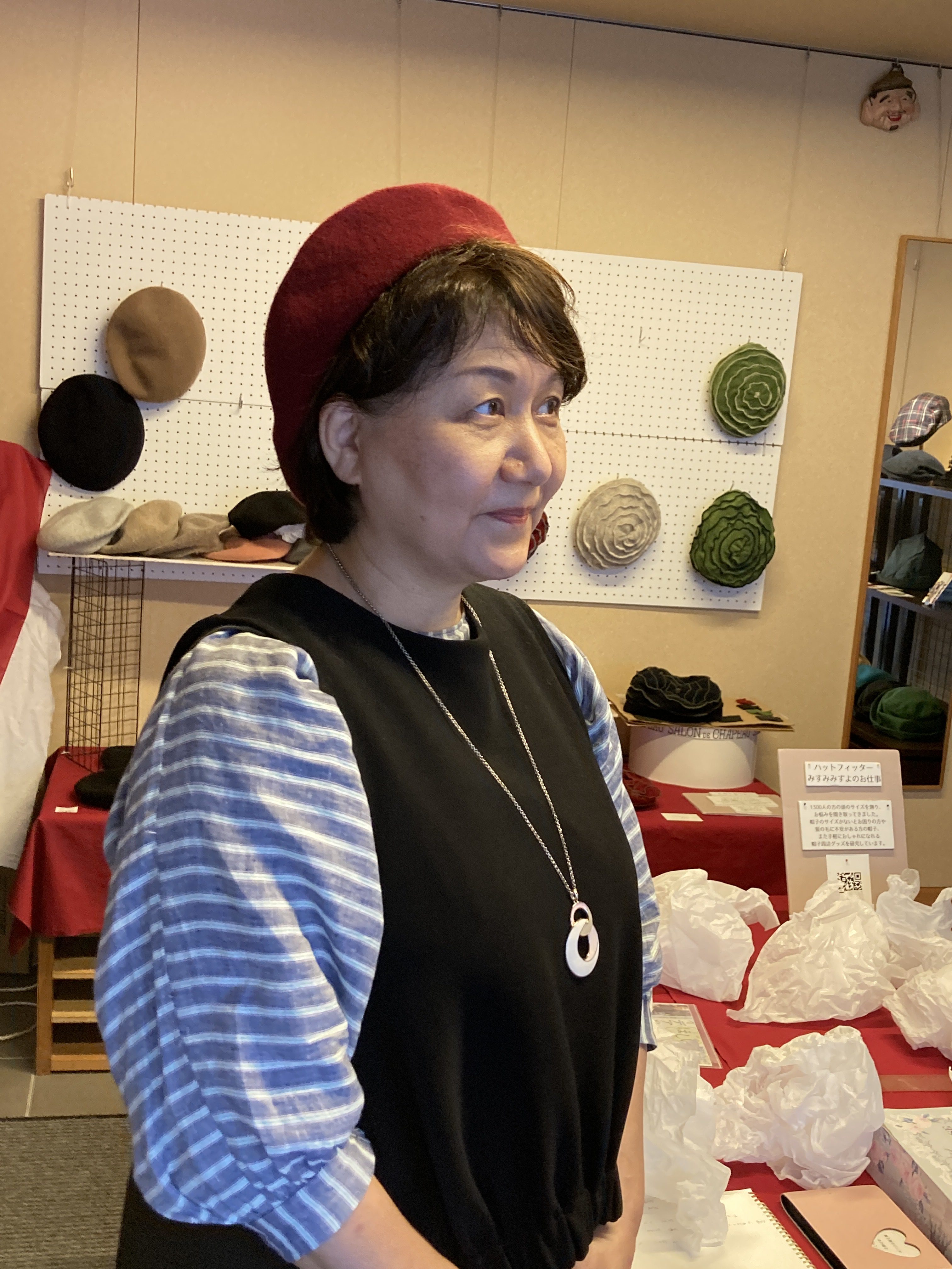 共通の知人がいる方との素敵な出会いがあったり、帽子はほとんど被らないとおっしゃる方に帽子の良さをお伝え出来たり、よかったです。