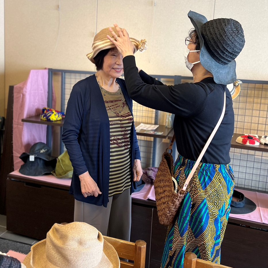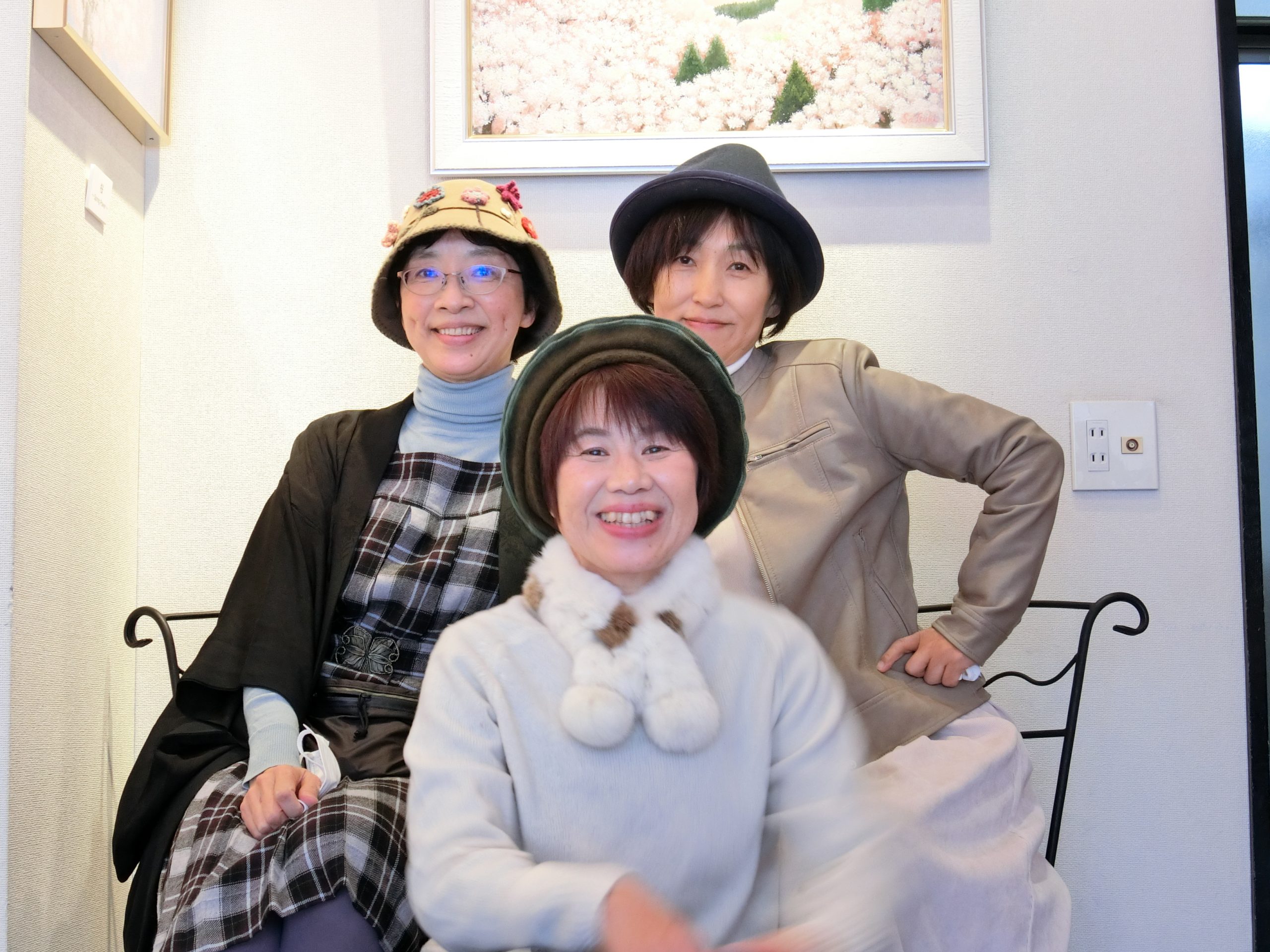 2021年の着物にも合う帽子展のときの画家の前田さつきさんとそのお仲間がお手伝いに来てくれてほんとーに助かりました!!