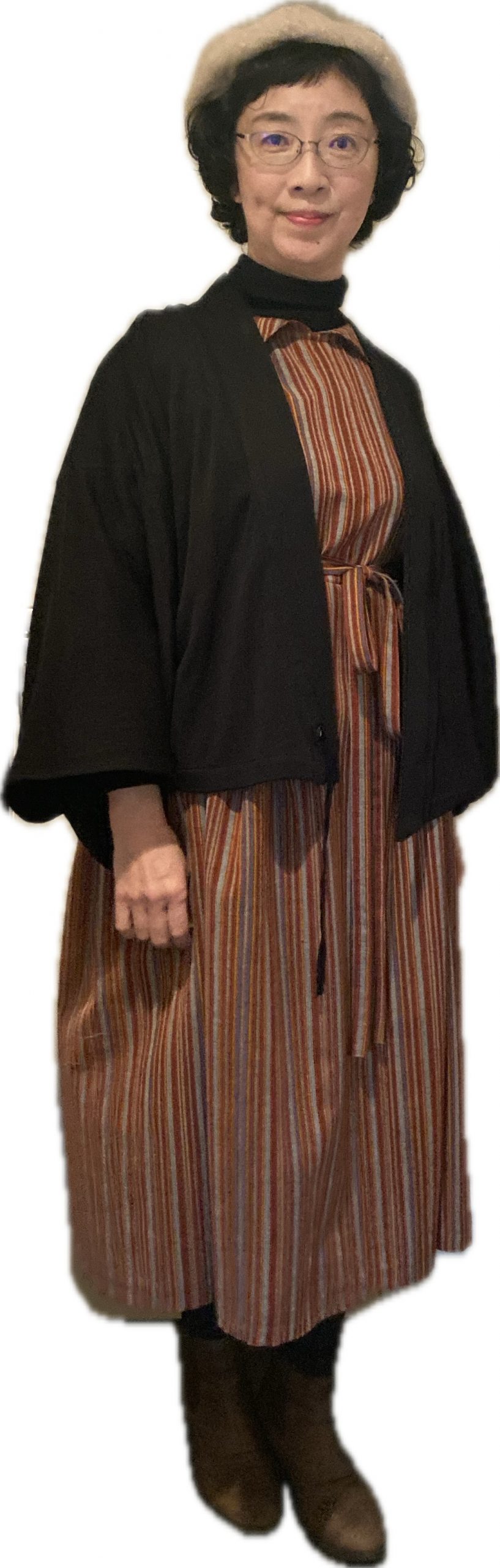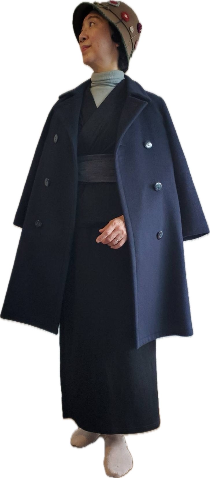 きもの、ということで私も着物リメイクのワンピースの上に羽織を羽織ったり