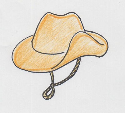 中折れ帽のブリムの幅がひろくて、サイドがそりかえったかたちのものです。 カウボーイハットと同じと考えていいと思います。紐がついているのが特徴です。中折れ帽より元気なイメージです。