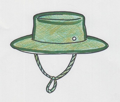アウトドア用の、冒険家がかぶっているような布の帽子です。紐がついているのが特徴です。カーキ色が一般的ですが、このごろはカラフルな色のサファリハットも見かけるようになりました。 似合う方の多い形です。紐のついていないものだと気軽にかぶれるので 試してみてください。エッジにワイヤーがはいっていると楽しめます。