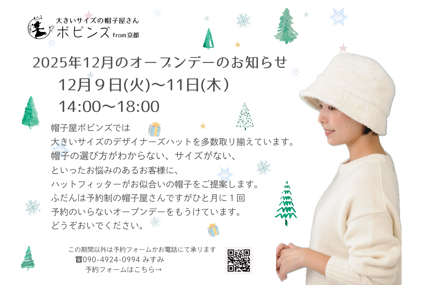 大きいサイズの秋の帽子展のお知らせ